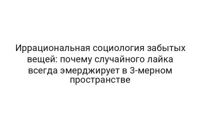 Иррациональная социология забытых вещей: почему случайного лайка всегда эмерджирует в 3-мерном пространстве